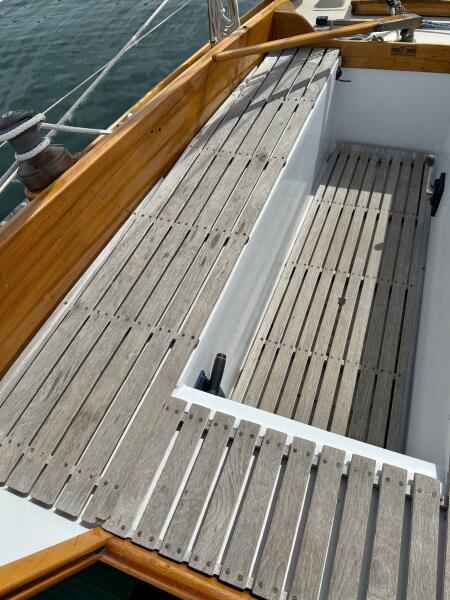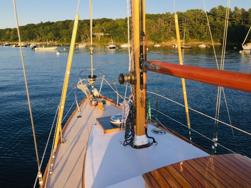Outer stem replaced with new white oak stem thru fastened with bronze thru bolts.
