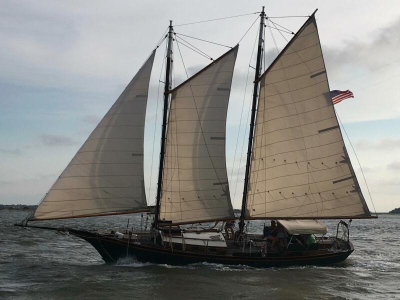 Knowing how they would be using this Sam Crocker schooner (mostly day sailing) upon purchase in 2004 her owners commissioned Crockers Boat Yard of Manchester (MA) to put her in good working order with bottom re-planked, a new Edson worm gear steering system, new teak decks and a major reconfiguration of the deck house and cockpit that shortened up the cabin house and greatly increased the size of her cockpit to reflect her new principle use as a fast day sailor capable of carrying a crowd of family and friends.