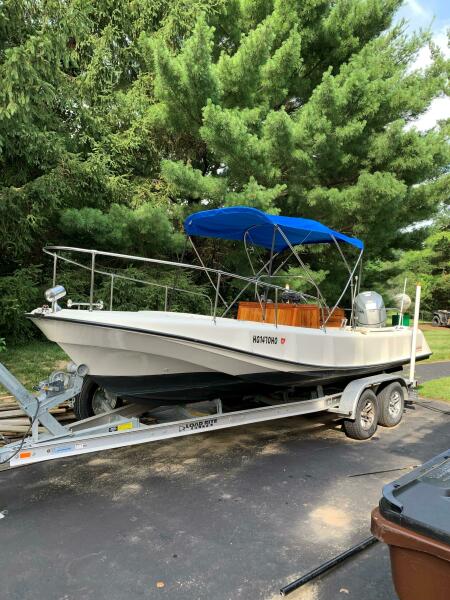 This 1972 Boston Whaler 21' Outrage Rib-Side is a classic and a must see for any classic Whaler enthusiast. She has gone through a complete restoration and is hull #394 of 722. She's a real "head turner"! Restoration included fiberglass, gel coating along with all Teak work. All new seating, new electronics including Lowrance HDS-7 LIVE with transducer, Garmin VHF radio, Fusion Blue-Tooth stereo, and NMEA 2000 interface. New bimini top, remote spot light and Load Rite trailer. The Rib-Side was the very first center console and the first boat in the Boston Whaler Outrage series. The first hull was delivered to the US Coast Guard at Woods Hole, MA. The Rib Side was manufactured from 1970 -1972. Powered by a Honda 150 HP 4-Stroke motor with only 90 hours of use. You have to see this one to truly appreciate the workmanship that went into it!