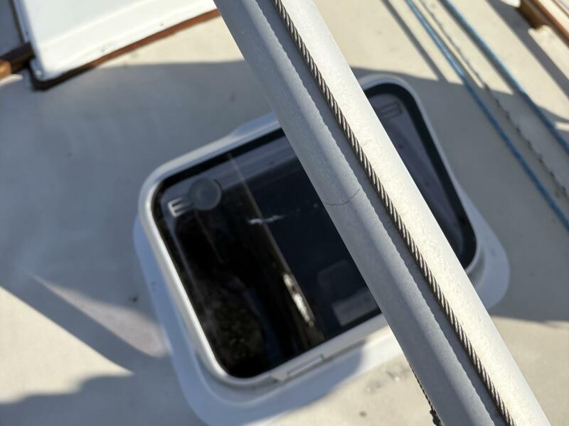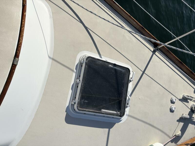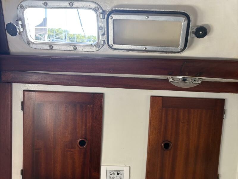Accomodations include a v berth with room for 2, 2 salon settees, and 2 pilot berths above the salon settees which can be used as sleeping quarters or storage. Additional storage is accessible in the settees. There is an additional quarter berth aft. 3 dorades and 2 Carafamo fans provide ventilation along with opening ports and hatches. The sole is teak and holly. A large salon table has 2 leaves, with storage for wine bottles in the center and additional storage below. All cushions are in very good condition.