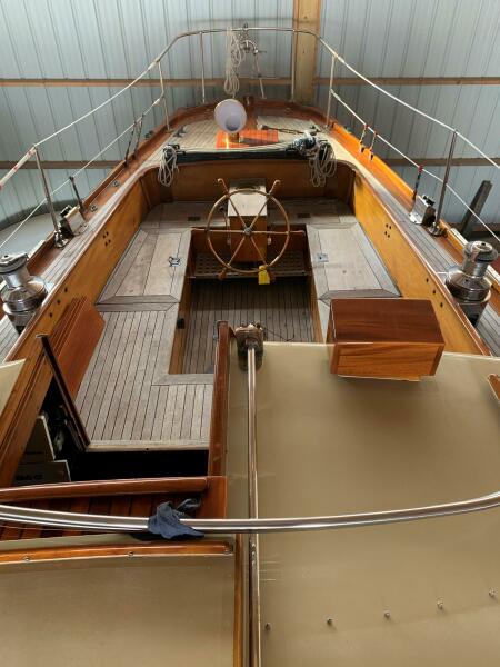 Now named Shanti this beautiful John G Alden 42’ yawl has gone on to school two more classes of students / owners in the way of the oceans and coast lines. Her current owners have enjoyed their time in oceanic academia and now having graduated at the top of their class wish to pass Shanti along to the next batch of students. Under the care of Rockport Marine for many semesters, Shanti is more than ready to step up to the lectern for many more years of imparted wisdom.