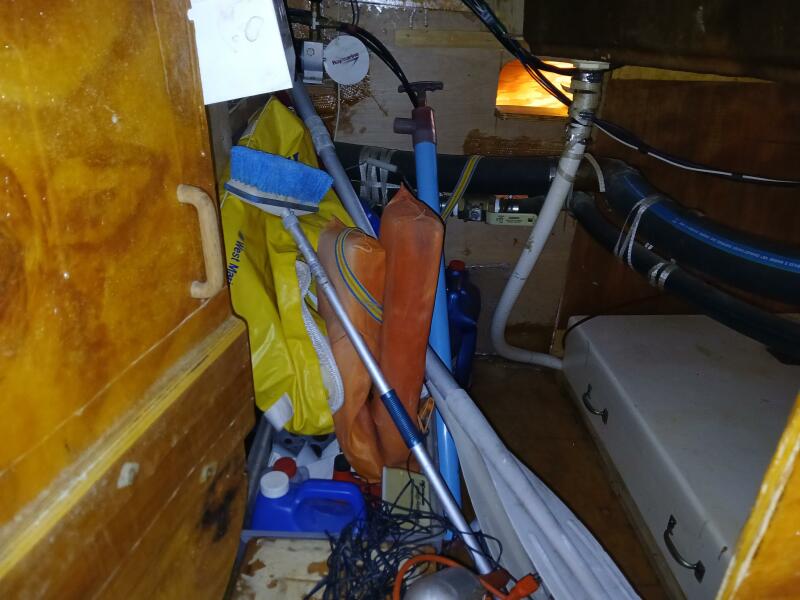 Delta 40 lbs anchor with 200’ nylon and 85 ft ¾ chain, secondary Fortress FX-55 plow anchor and 200’ ¾ chain and 200 ft nylon rode. Danforth in head bilge and emergency Danforth mounted on push rail to port ready for deployment