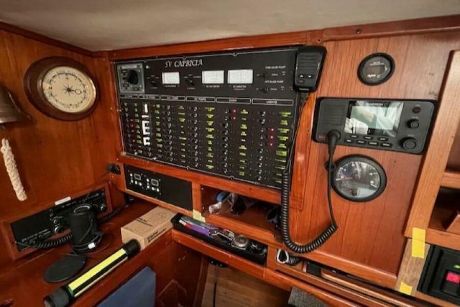 She is easily handled due to her electric winches, Leisurefurl in-boom mainsail and electric roller furling headsail system which includes a removable inner forestay. CAPRICIA'S highly experienced present owner has done an enormous six year refit which includes the installation of a new 80 hp Common Rail Yanmar diesel, new composite engine mounts, reworking entire engine room, new transmission, a complete rewiring of vessel with new panels and batteries in easily accessible quarter berth cabins. New Garmin electronics were installed, new galley design with Corian countertop, new Sea Frost refrigerator and freezer, new LPG Force 10 stove and oven, new 12V fresh water heads and plumbing. The list includes new S/S lifelines, new standing rigging, some new sails and much more. CAPRICIA is offered at a very realistic, attractive price. The owner's intention was to comply with USCG Certification of Inspection certification to carry up to 12 passengers for hire. His plans have changed, offering and excellent opportunity for her next steward.