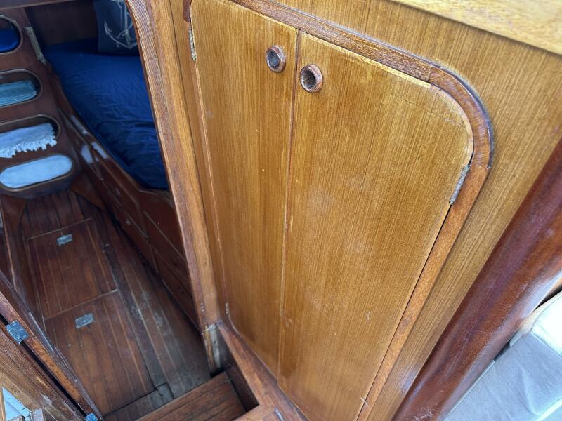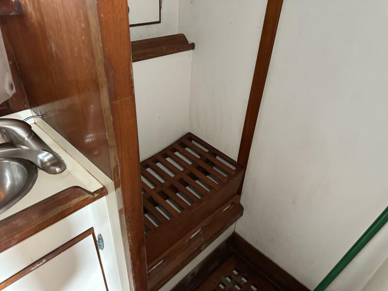 Below deck, the Pan-Oceanic 46 features a warm, traditional interior with generous headroom, excellent storage, and a practical layout designed for long-term living aboard. The spacious salon, functional galley, private cabins, and ample tankage make her well-suited for long passages or full-time cruising.