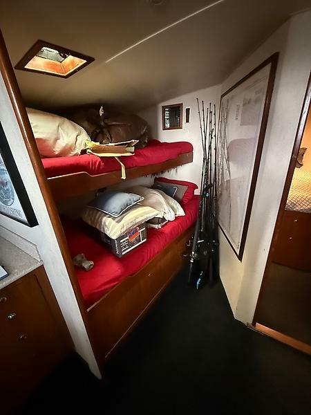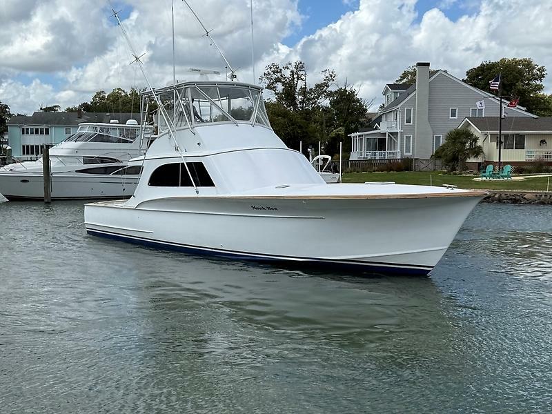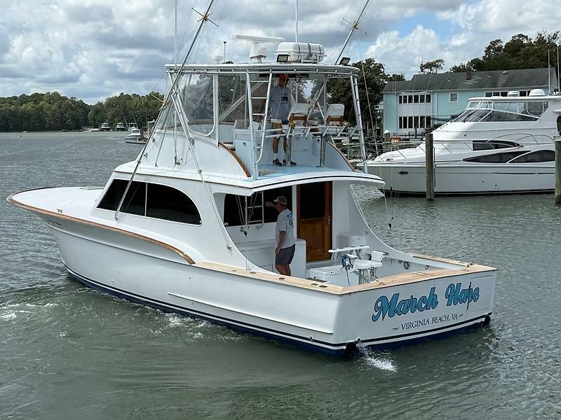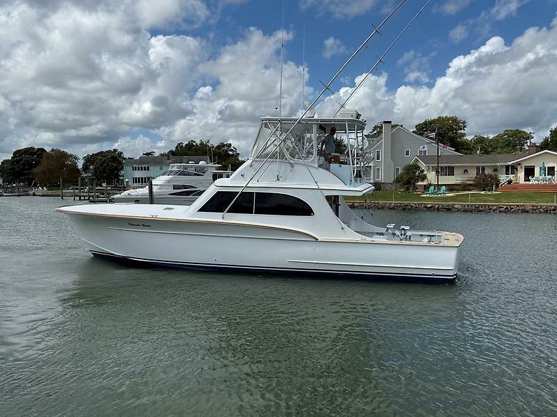 The "Marsh Hare" is a 51ft Ricky Scarborough that was built in 1987. She is listed as hull #51. Featuring a galley down interior layout, the salon is very spacious and open. She was re-powered in 2017 with twin remanufactured Cummins 8.3 LTE 500hp (3700 hours) engines, she cruises an easy 23 burning about 34 gallons per hour. She has relatively new Garmin electronics, bait freezer, huge salon, companionway bunks, and private master stateroom. She also features an enclosed head with shower stall, galley down with drawer-style refrigeration, tackle storage area in the companionway, salon, and cockpit, transom fishbox, generator, air conditioning, and very traditional Carolina lines!! Ricky Scarborough is known throughout the sportfishing industry as one of the early pioneers of what has become to be known as the true "Custom Carolina" classics. This boat is of the original "plank on frame" construction method. Call for more details and arrange a showing, this size Carolina boat will not last.
