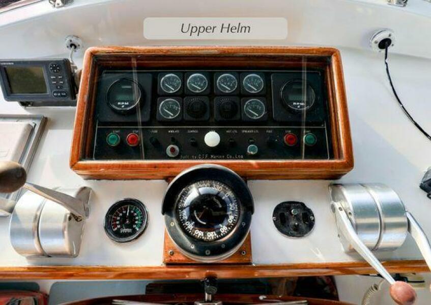 Powered by twin Ford Lehman diesel engines, this DeFever is known for its reliability and fuel efficiency, ideal for cruising both near and far. The recently installed Makrolon Flybridge Enclosure enhances livability by providing a versatile, weather-protected space to enjoy panoramic views, whether you’re navigating, dining, or simply relaxing.