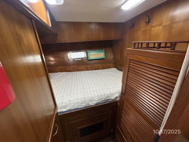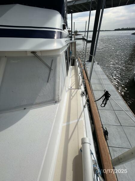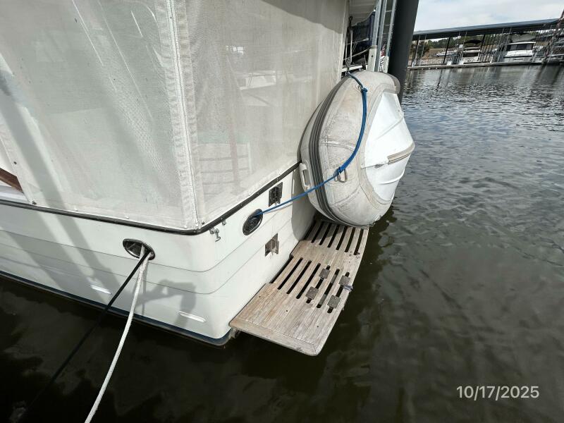 First Light is a 1988 40' Kha Shing flybridge sedan. She offers twin Cummins 150-155 HP main engines (Starboard original and port re-manufactured in 2010), Onan 8 kW generator, Tides dripless shaft seals, solar panels, hinged Radar arch, hardtop covered aftdeck, galley on the main deck and a two stateroom layout. First Light is a Great Loop veteran and has an attainable height above the waterline of 13'4".
