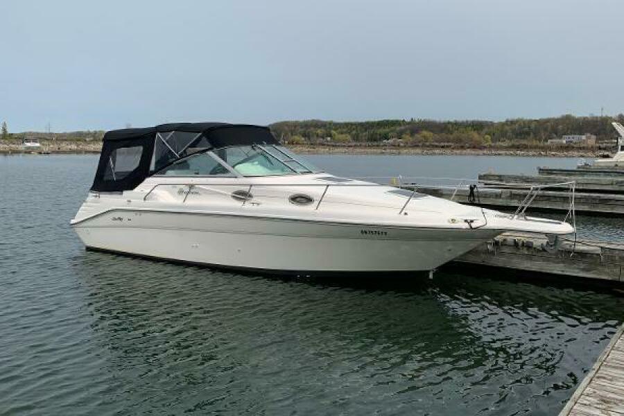 One of Sea Rays more popular models, the 270 is a Express cruise with an 8ft 6in beam. Inside, the mid-cabin floorplan provides berths for four along with a small galley and a stand-up head with shower. The mid-cabin berth is large enough to accommodate two adults in reasonable comfort. On deck, a double helm seat with a full aft-facing seat, refreshment center, and fold-away rear seat were standard. A single 7.4-litre MerCruiser I/O will cruise at 21-22 knots and reach a top speed of about 35 knots. This boat shows well and ready for cruising.