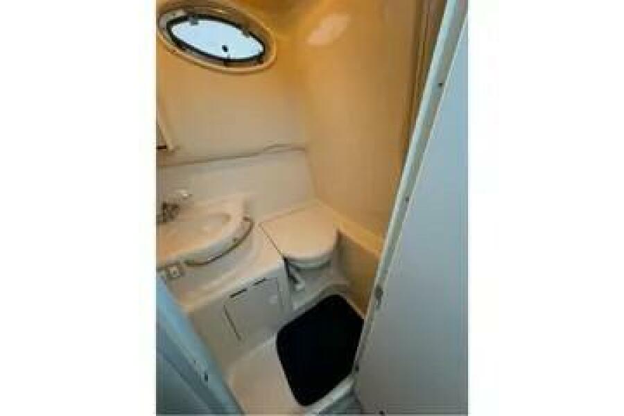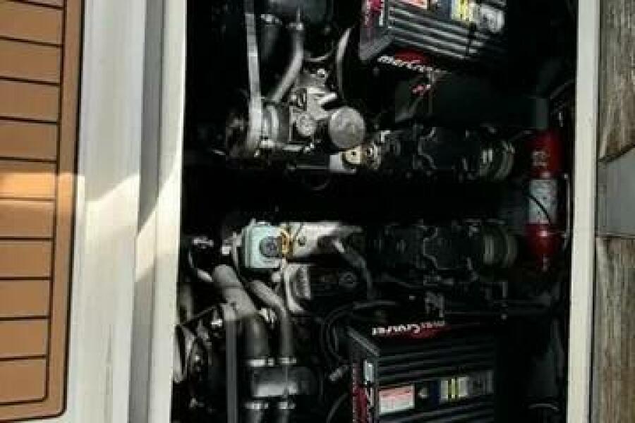 Brand-new full camper top and enclosure (valued at $6,100). Powered by the largest engine package offered — Twin Mercury 5.7L Bravos delivering a combined 520 HP. Equipped with two new outdrives and propellers. Features all-new custom Sea Deck flooring throughout.Windlass anchor system operable from both the helm and the bow. Sea Ray VacuFlush head system with showers located both in the head and at the stern. The cabin includes a full galley, two hanging lockers, and sleeping accommodations for 4–6 (4 comfortably with separate quarters). Electronics include a Garmin touchscreen GPS and a new illuminated compass. Dining tables seat four adults below deck and 4–6 aft. Aft deck also includes a wet bar with sink and a Magnum stainless steel grill. Upholstery is in excellent condition with no cuts — full lounger to port and flip-up bolster at the helm for seated or standing operation.