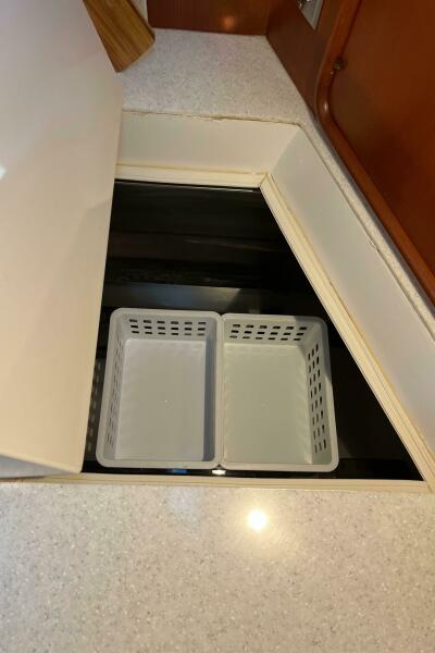 The galley is to port of the companionway and is a gourmet cook's delight. Bright and well-arranged, it features full equipment and good countertop space and cabinet/drawer storage throughout.