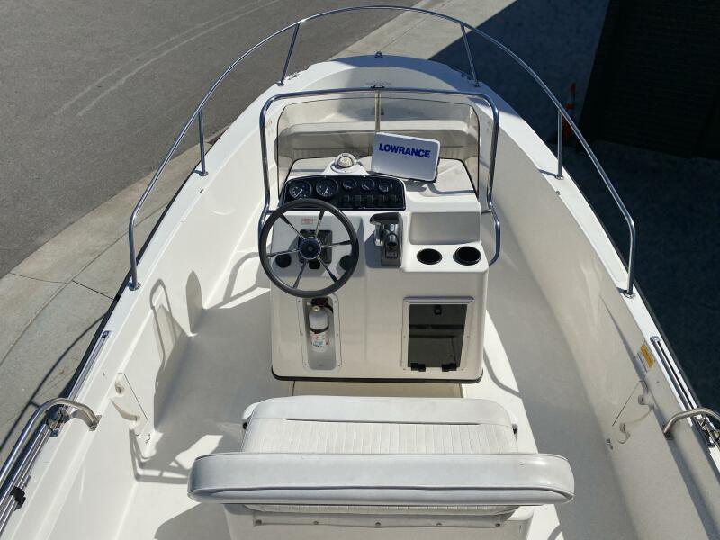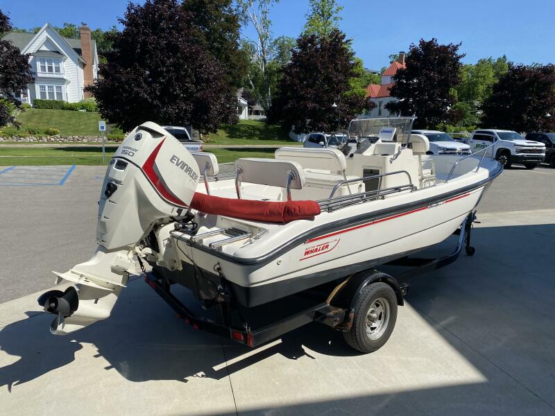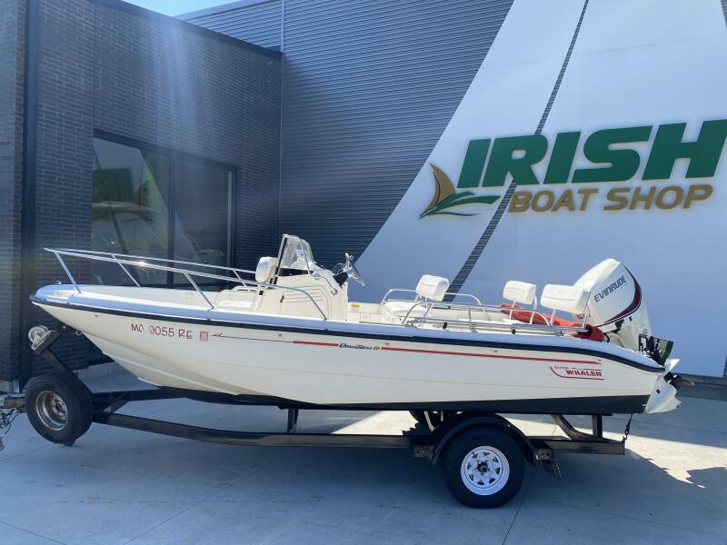 This 1998 Boston Whaler 18 Dauntless has been re-powered with a 2017 Evinrude 150 HP E-Tec engine. A freshwater, unsinkable, center console boat with comfort package and all the right options. Yacht quality components, Accutrack hull design for smooth, dry ride offering superior stability and predictable tracking. This is the ultimate family/fishing machine and includes a single axle Eagle trailer.