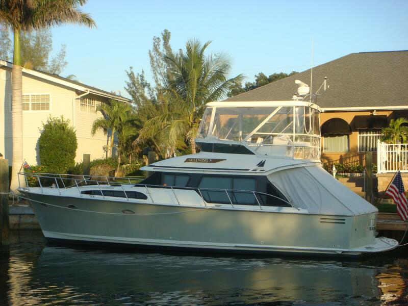 Gullwing is a 1998 43' Mikelson convertible offering twin Caterpillar 3126 HP main engines, Northern Lights 5 kW generator, Trace Engineering 1,500 watt inverter, large cockpit, flybridge hardtop and a 2 stateroom layout. She was originally Tom Fexas' (Renowned naval architect) personal boat. She is Great Loop capable.