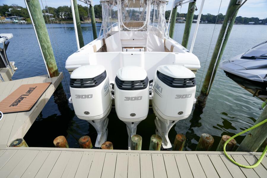 This 1999 Intrepid 366 Cuddy is a prime example of why Intrepid hulls are legendary. Repowered with Triple 300HP Suzuki outboards, she is fast, efficient, and reliable. The boat cruises comfortably at 38 MPH (1.4 MPG) or a fast cruise of 45 MPH (1.2 MPG), topping out over 60 MPH.