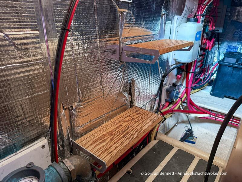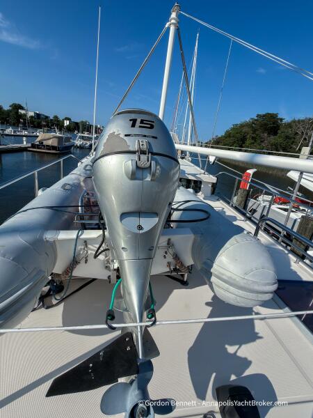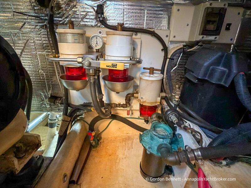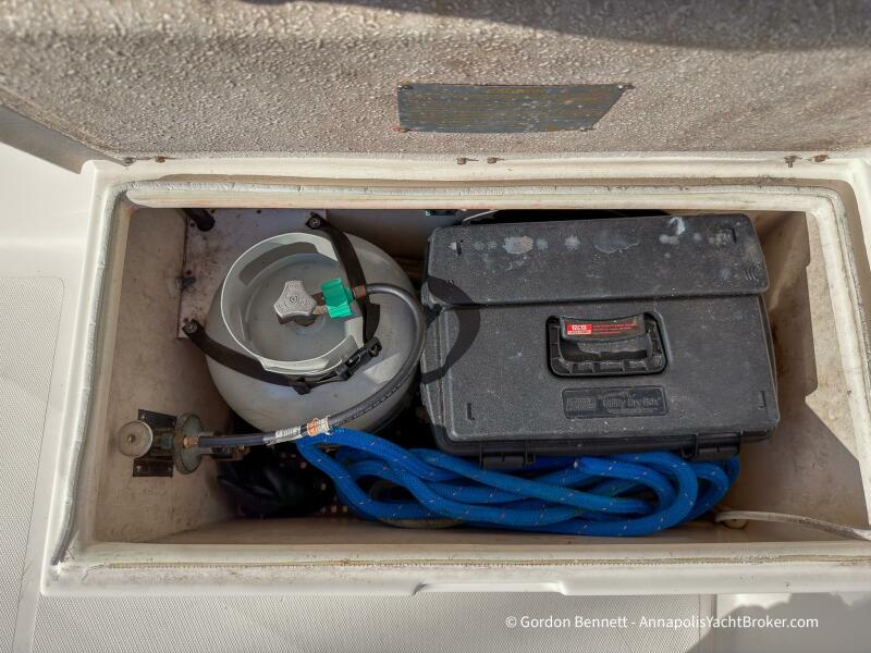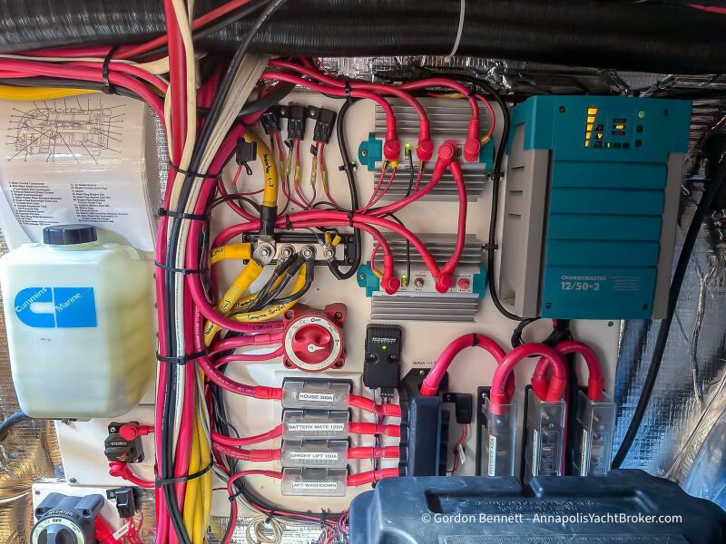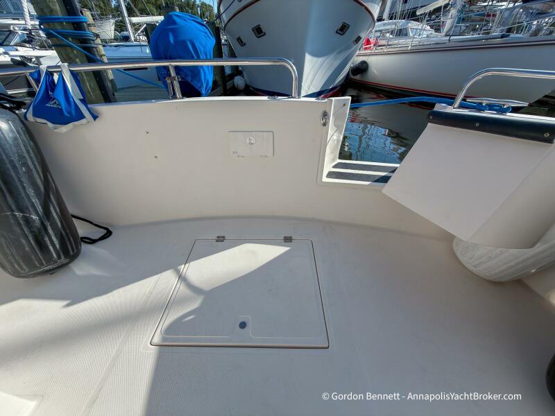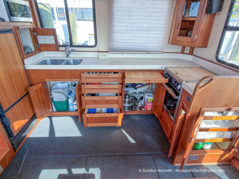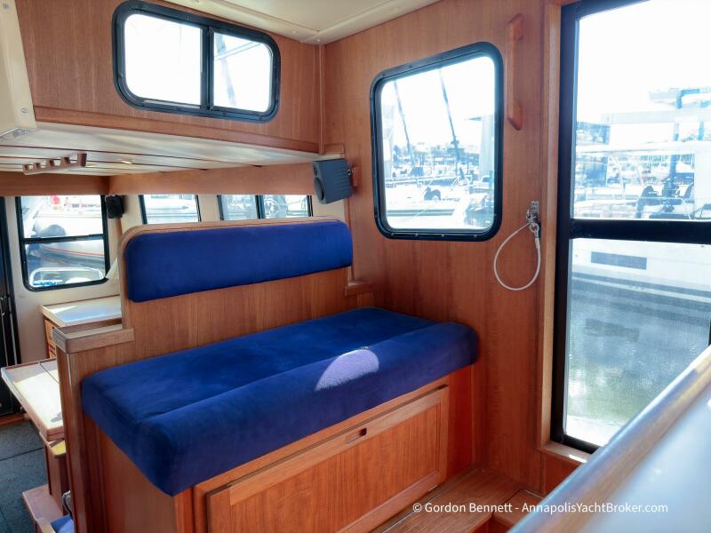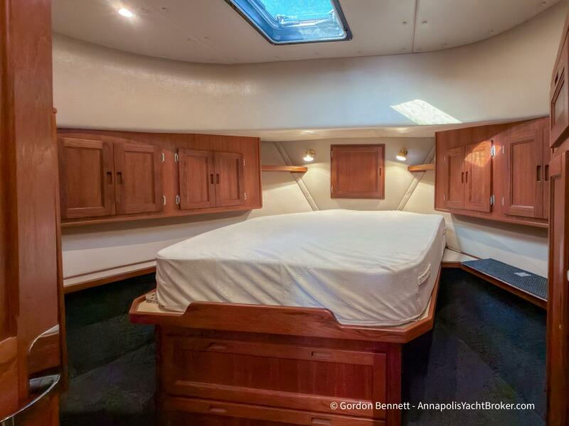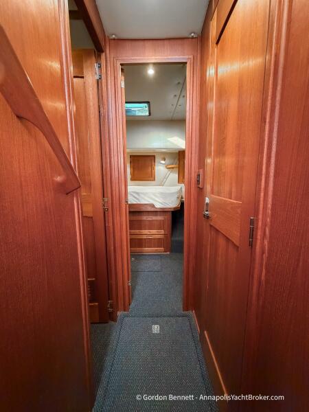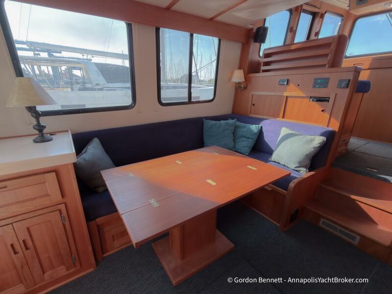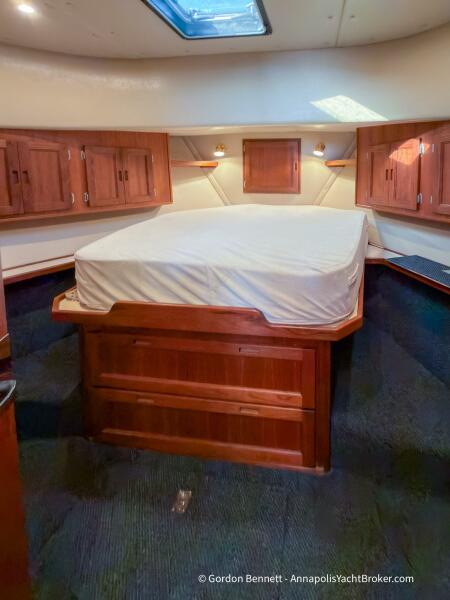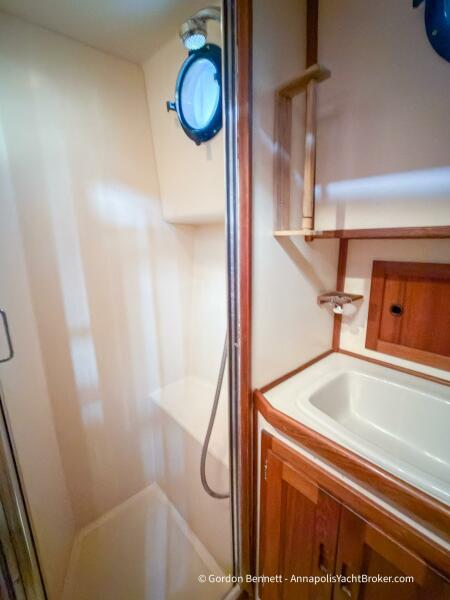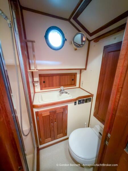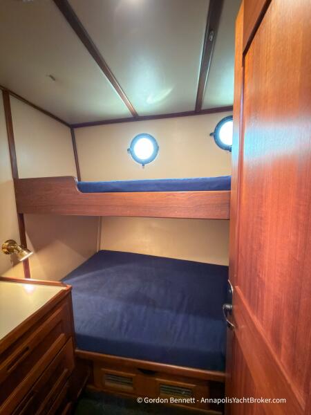 Layout: Dee Gee features an owner's stateroom forward with a very comfortable queen-size mattress. The guest cabin is to port and features two bunk-style berths. The hi-lo table in the saloon converts to another berth if needed. There is a single dry head with a separate roomy shower.