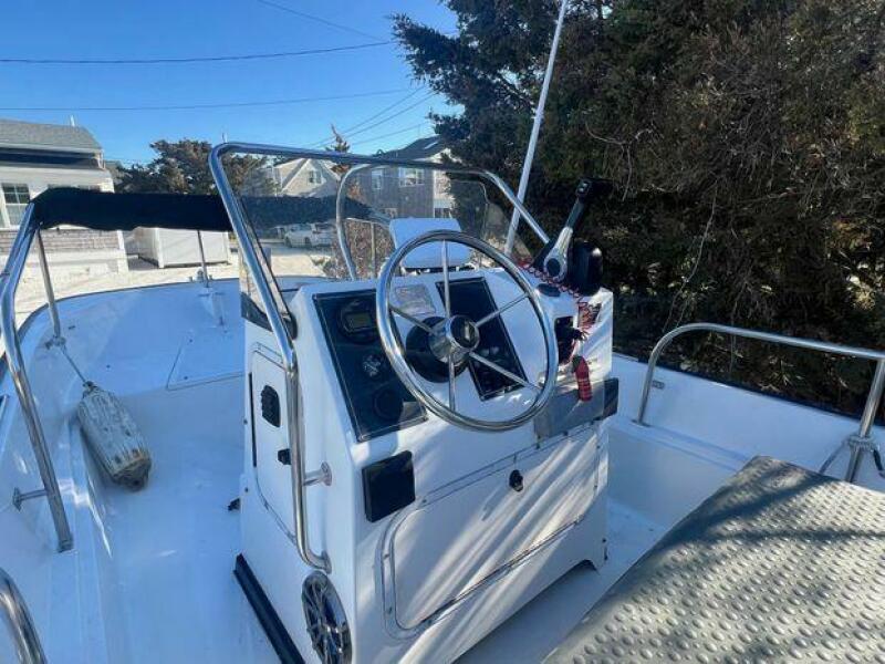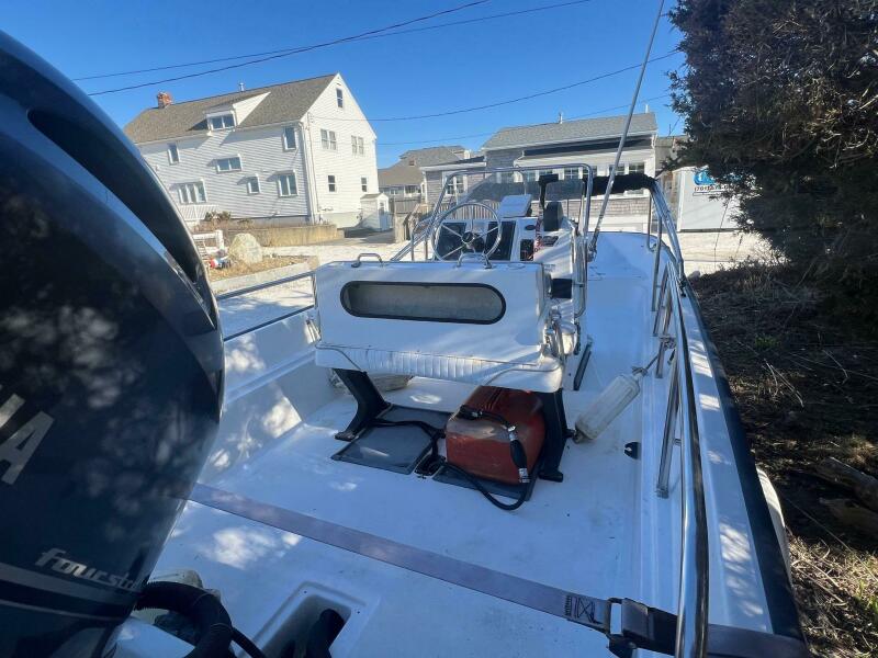The 17 features the security of hand-holds everywhere and the stable classic twin sponson hull configuration. A reversible pilot seat allows driving seated or standing, and functions as an aft-facing bench for lounging. Vertical rod holders in the seat back are standard, and the bow locker has a through-hull drain and nonskid fiberglass cover. All the hardware is stainless steel, from the lifting eye at the bow to the ski eyes at the stern. The center console layout, a Boston Whaler innovation, raised eyebrows back in 1961. By moving the helm from the starboard side to the center of the craft, boaters got better steering control and an even keel. With more room to move around, they got better fish-fighting capabilities. Now, countless manufacturers use this layout for their fishing boats. For 1996, Boston Whaler introduced the Accutrack hull. This system combines the smooth ride of a deep-V design with the dry ride provided by strategically placed chines. A Boston Whaler has a distinct style. The distinctive Whaler 'smirk' - a reverse chine and forward spray rail - catches spray and redirects it beneath the hull. In a following sea, it pushes the bow up for better steerage and improved safety. Thoughtful layouts put amenities such as prep stations and controls within easy reach. Seats can handle hundreds of pounds in static loads. Coaming pads are scaled to catch people above the knees. Helms have unobstructed views. And fishing areas provide optimum freedom of movement. Boston Whaler's Unibond construction starts with steel-reinforced hull molds to ensure consistency. Gel coat is sprayed into the mold to create what will be the hull's exterior, a skin coat of fiberglass is applied, varying biaxial and biaxial fiberglass sheets are coated with resin and hand-rolled into place. The deck mold is lowered into the hull mold and the two are latched together to form a closed mold system. Liquid structural foam fills the cavity between the hull and deck. The access plate is secured, and the foam bonds permanently to the resin and fiberglass. No screws, rivets or adhesives are necessary since the hull and deck form a single unit. Boston Whaler offers a ten-year limited transferable hull warranty. Boston Whaler's lifting eyes extend completely through the Unibond hull, they are reinforced for maximum towing and lifting strength. On all Whalers, cleats are generously sized. Hinges are solid stainless steel, not stamped and rolled. Fittings are recessed wherever possible to spare toes and to promote long life. Boston Whaler uses noncorrosive, welded, 316 stainless steel for its bow rails, to prevent water penetration, bleeding, rusting and staining. Fasteners are chrome-plated over the stainless for extra insurance against corrosion in the saltwater environment. Boston Whaler has a custom synthetic material made to back their fittings. This 'Whale board' is impervious to moisture, as strong as aluminum and has twice the holding power of mahogany All seats and seat bases on Boston Whalers are made of rot-proof, maintenance-free composite materials. Boston Whaler makes its own custom wiring harnesses specially designed to prevent corrosion. The company uses shrink-tube electrical connectors and tinned copper wiring, waterproof switches and circuit breakers. Boston Whaler cockpits are all finished fiberglass, pretty much anywhere you might set your feet a molded-in nonskid surface offers good traction. Interior surfaces, including the bilge, are clean, smooth, finished gel coat, there's no raw fiberglass to trap stagnant water and debris. To perform a swamped capacity test, Boston Whaler pumps hundreds of gallons of water into the boat while a crew of employees climbs aboard. The swamped capacity is reached when water overflows the gunnel. With a swamped capacity of 2,000 pounds, a 16-foot, seven-inch Montauk can easily hold 10 people while swamped. Whether the classic twin sponson hull design or an Accutrack System hull, which combines a deep-V hull entry and a reverse chine with Unibond construction, there's a stable hull configuration and spray redirected under the hull.