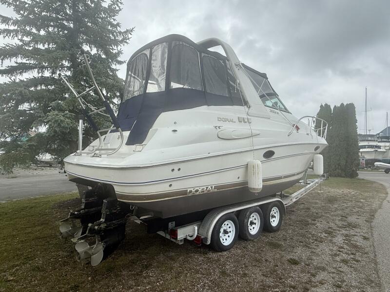 New listing September 2025! A clean two-owner Doral 300 SE with only 506 hours. This vessel has had the full canvas enclosure recently replaced and comes paired with a tri-axle aluminum trailer. The cockpit offers exceptionally large seating for a 30ft boat, with sleeping accommodations for four down below. You won't find many boats in this size range with a generator and AC/Heat, making this a great package.