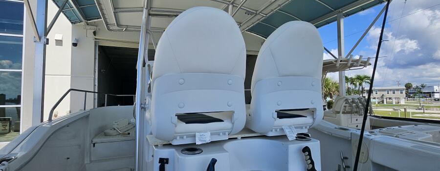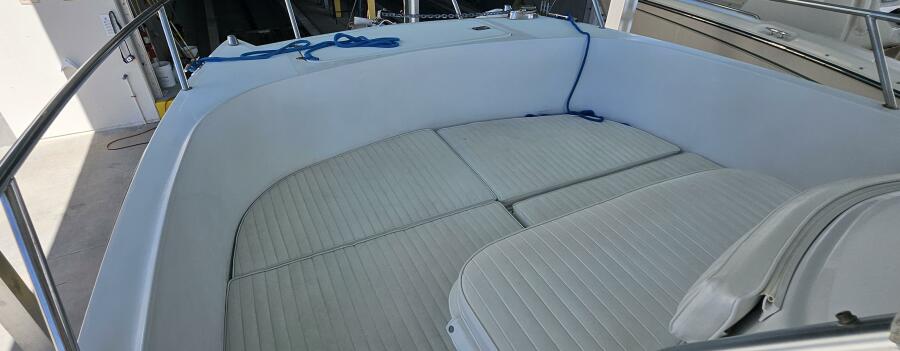 Equipped with twin Yamaha F150 outboard engines, each delivering 150 horsepower, it offers a robust and exhilarating ride, perfect for adventurous outings. With only 480 hours of use, these engines promise reliability and power for your journeys. The boat features an electric windlass, enhancing convenience when anchoring or mooring.