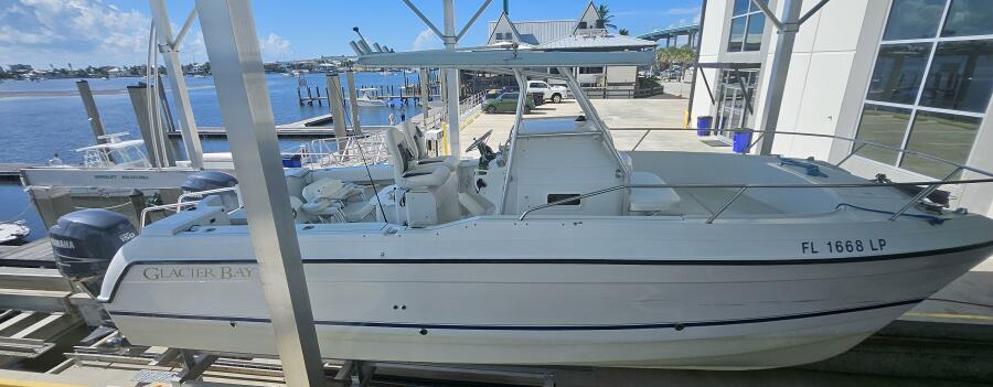The 2001 Glacier Bay 260 LX C is a remarkable power catamaran that embodies both performance and comfort. With an overall length of 26 feet, this vessel is crafted from durable fiberglass, ensuring longevity and resilience on the water.