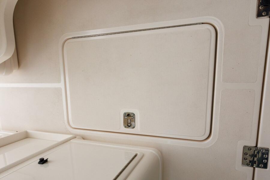 There is ample seating for family and guests on the helm deck and in the cockpit along with tons of storage. Molded fiberglass hardtop provides plenty of shade along with weather protection whether offshore fishing or just cruising.