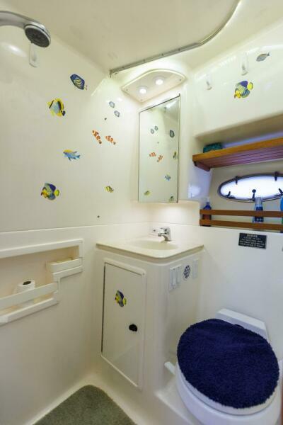 The yacht finished, well-appointed, air-conditioned cabin has all the amenities for extended cruising or just spending a weekend aboard in total comfort.