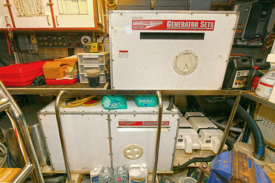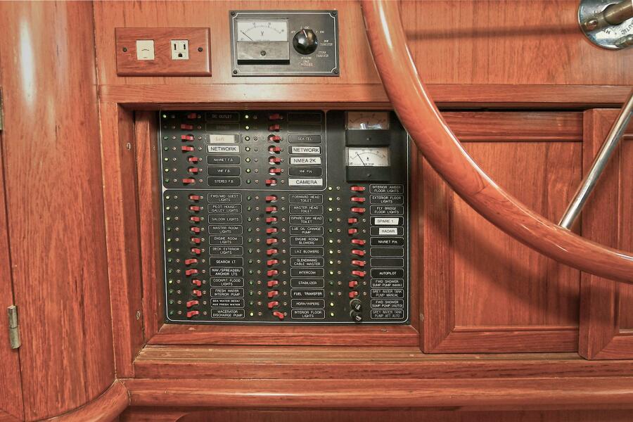 "Symmetry" offers an enormous amount of wide-open space with all the Current Technological Amenities of any vessel available. She features a Flush Deck layout with a Full Cockpit, comfortable Aft Deck, engaging salon and galley and even an On Deck Head. The Pilothouse has a Large L-Shaped Settee with table and a centerline Stidd Helm Chair. The Portuguese Bridge keeps owner and guests safe as does the protected walk around decks. "Symmetry " has two staterooms forward (each with their own head) and Private Full Width Owners cabin (with an ensuite head) all the way aft.