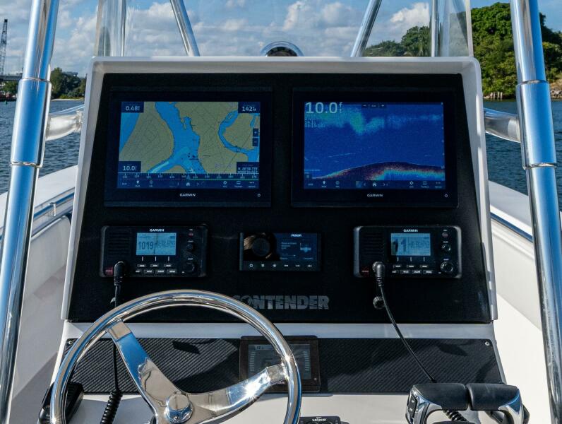Introducing a beautifully upgraded 2003 Contender 27, modernized stem to stern in 2024–2025 and turnkey for serious anglers. The entire hull has less than 700 hours on it and was trailer kept until 2024. This vessel features a brand-new 2025 twin Yamaha F300(approx 130 hrs) repower with warranty through 2028, fully updated Garmin electronics including dual 12" displays and HD radar, all-new upholstery, refreshed hardware, upgraded pumps, chargers, and steering systems. She has the optional 4th fuel tank fwd. providing a total of 250 gallons on board and balances the boat out great!Professionally polished, rigged, and equipped with new outriggers, sound system, inverter, and more, this Contender shows and performs like a much newer boat—ready for offshore action the moment you step aboard.