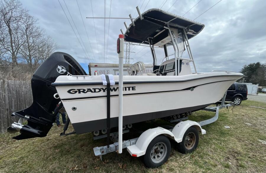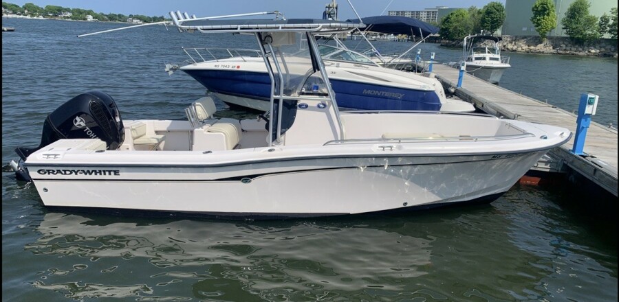 A nicely kept Grady-White Fisherman REPOWERED in 2023 with a 250HP Tohatsu outboard (approx. 55 total hrs), new Garmin electronics (2023), 2004 Venture trailer included!