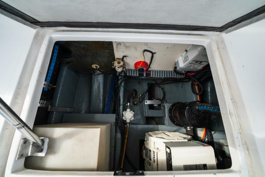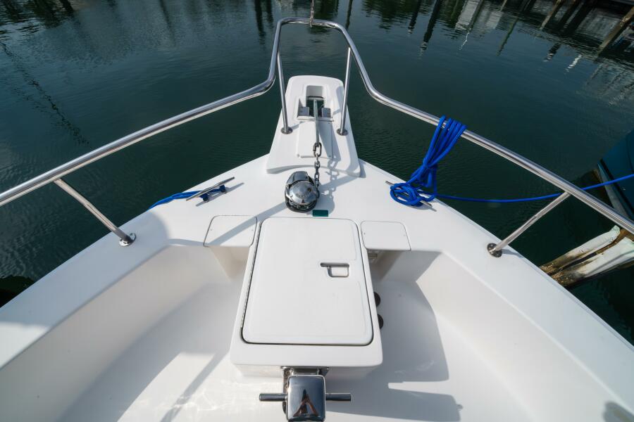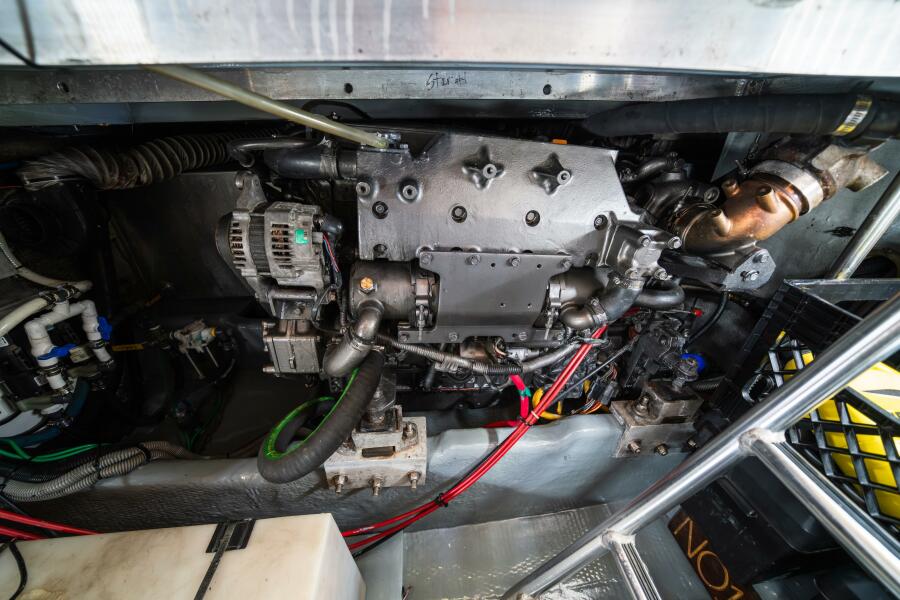 Power comes from very rare and highly desirable twin 240-hp Yanmar diesel engines. The vessel is equipped with dual HVAC systems for year-round comfort and a generator for reliable offshore electrical power. Deck hardware includes stainless steel bow rail and pulpit, radar mast, wide side decks, and a swim platform for easy water access.