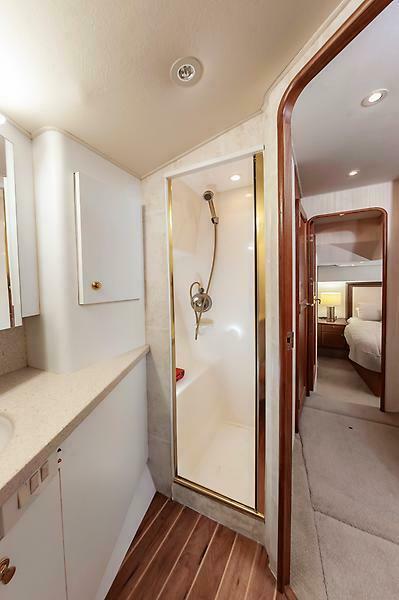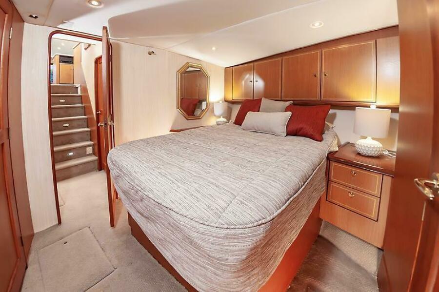 Staterooms Features: 3 staterooms total-Two Queen bed staterooms (Each with an ensuite Head and Shower), plus a Bunk Room connected to the Day Head, Washer and Dryer.