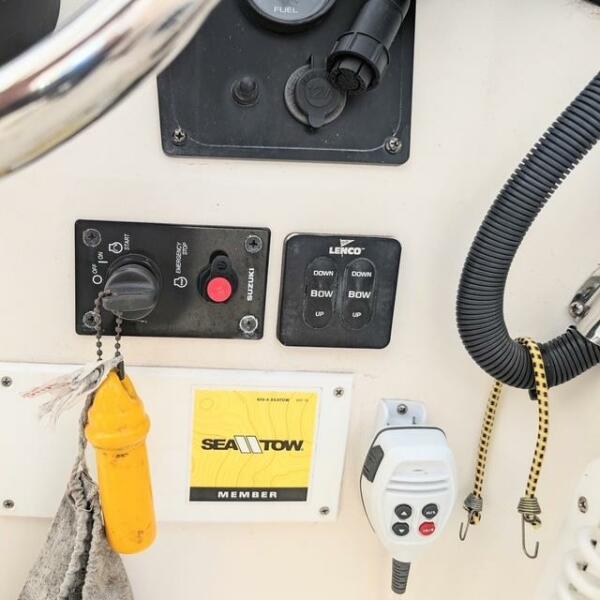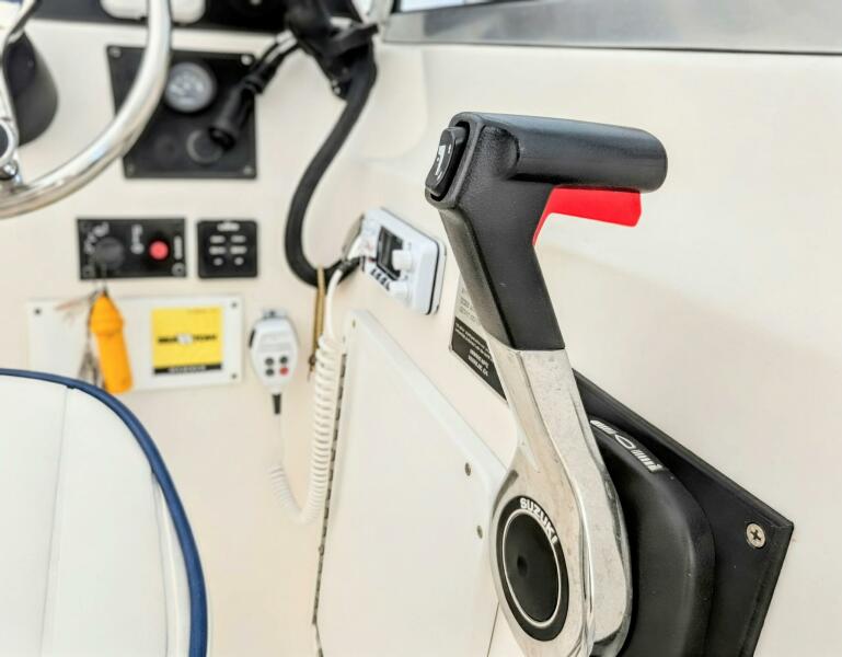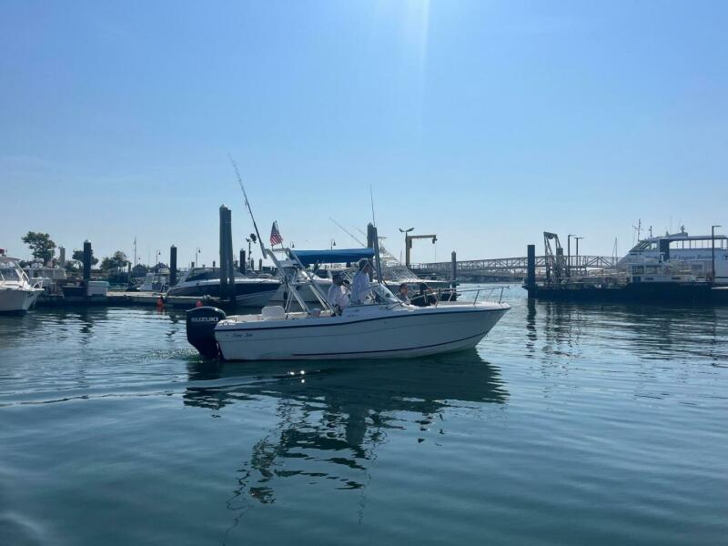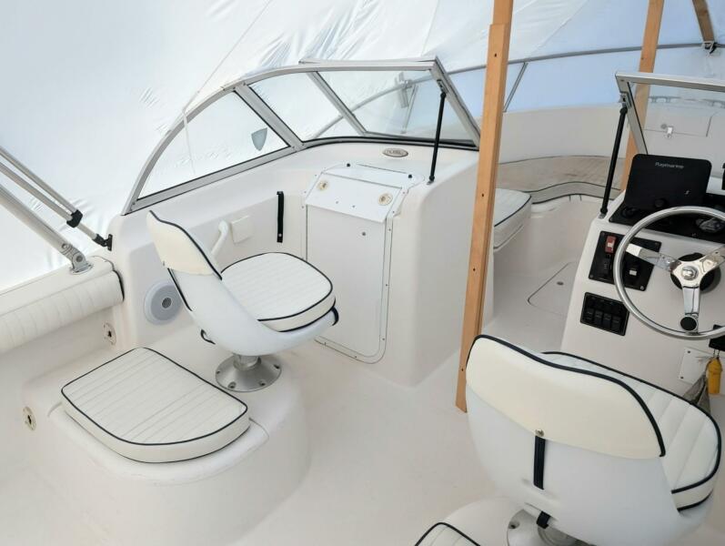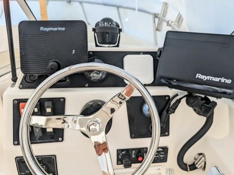 The 2003 Palm Beach 22 Dual Console White Cap is a 22-foot fiberglass outboard boat designed for both fishing and pleasure cruising, offering a blend of utility and comfort