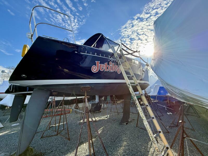 Jubilee is a 2005 Beneteau First 36.7 Racer/Cruiser. Her blue hull was painted at the factory in Marion, SC. From 2006-2022 she has sailed in the brackish waters of the Chesapeake Bay and enjoyed many successes, including High Point Awards in both One Design and PHRF Handicap. She was re-located to Mystic, CT in 2022