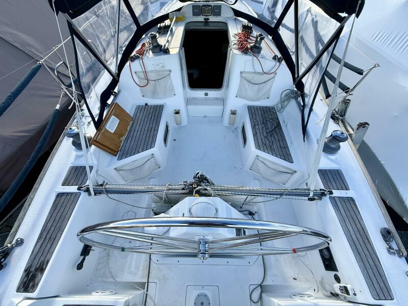 A full suit of North Sails racing sails conveys, along with a custom winter cover, North Sails dodger, and custom sun awning. Recent upgrades include Lithium batteries, standing (rod) rigging, Tuff Luff, AIS transceiver, as well as VHF radio and cockpit RAM mic.