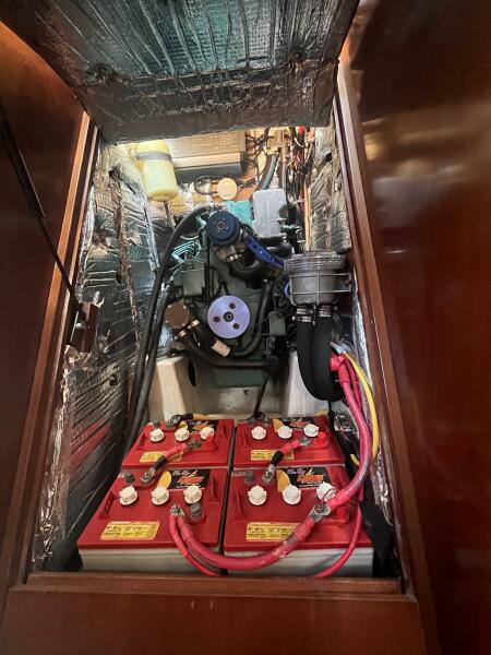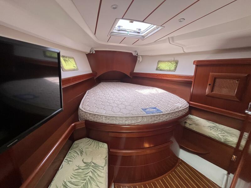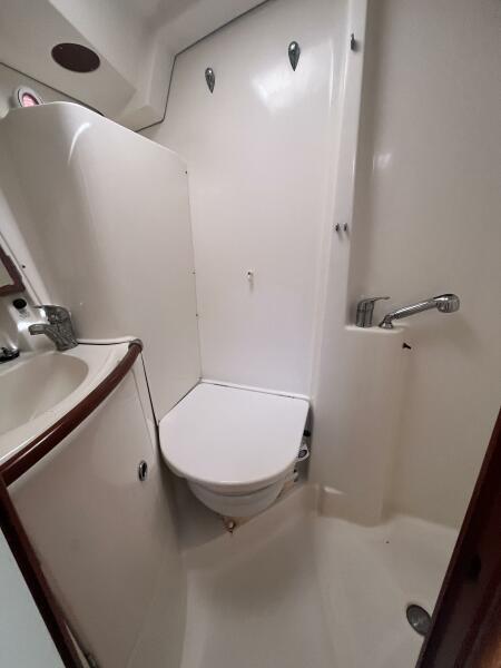 The traditional cherry wood joinery below is rich and warm and is enhanced by an abundance of light provided by fixed overhead windows as well has numerous hatches and portlights which provide excellent ventilation. The layout is extremely 'liveable', with the galley tucked to starboard, guest cabin and day-head to port, comfortable salon and large main cabin with en-suite head in the bow.