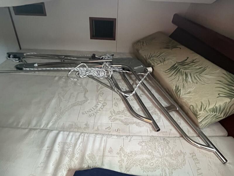 The large cockpit with walk-through transom and wide transom step allows a crew of 4 or more to live comfortably as well giving easy access to the dinghy and to the water. The uncluttered side decks and bow make moving about, either at anchor or under way, a simple task.