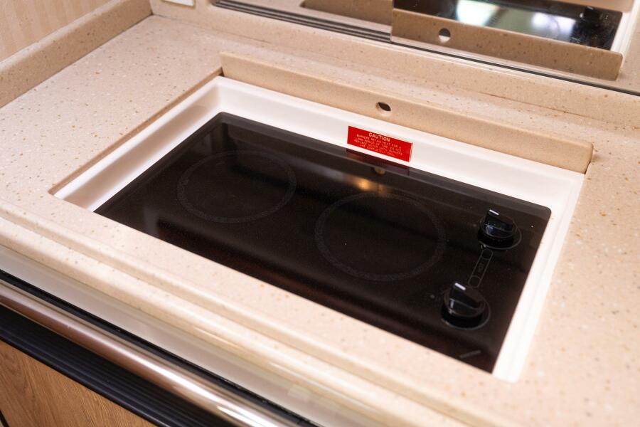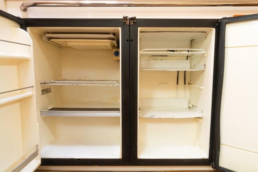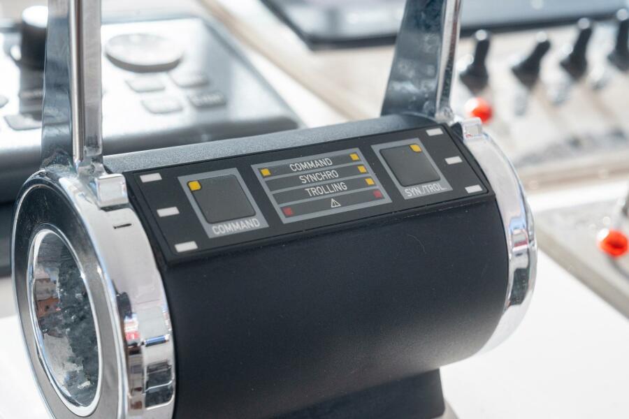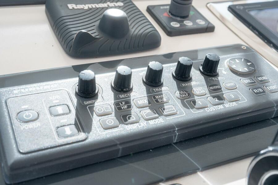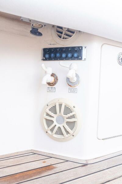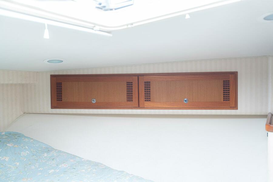 Built on a Modified-V hull with a wide 15'9" beam and deep propeller pockets, the Center Helm position of the 40 Express is one of her more notable features. It's three steps up from the Cockpit to the Helm Deck, where an L-shaped settee to port seats eight. Down the Companionway is the Salon with the quality joinery and premium furnishings for which Cabo was known. The L-shaped sofa to starboard converts to upper / lower berths, and a full-service Galley with an electric cooktop and Corian counters is to port, just forward of the large Head compartment with a separate stall shower. A queen berth is in the private Master Stateroom.