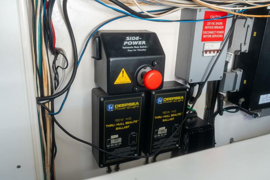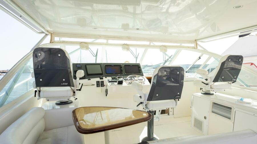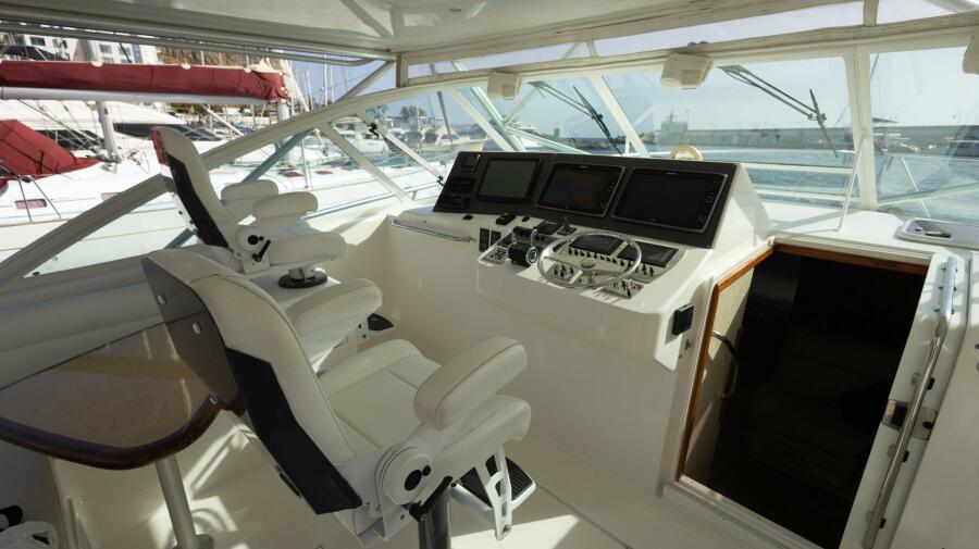Standard features include a molded bow pulpit, teak-and-holly Cabin sole, recessed trim tabs, 48-gallon transom live well, fresh water / raw water washdowns, Cockpit bolsters, insulated in-deck fish boxes, bait prep center, lockable rod storage, bait freezer and transom door.