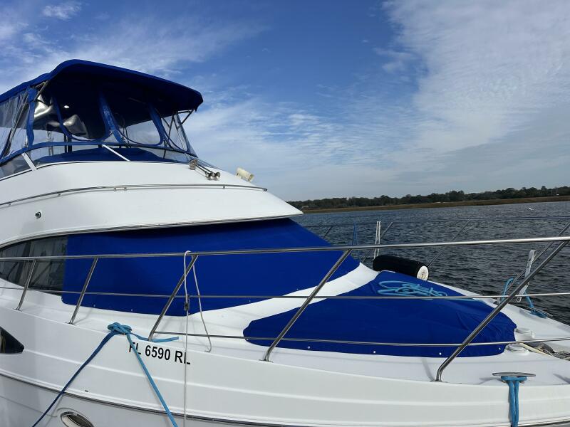 Protection: Equipped with a full Bimini top and clear enclosure to keep you comfortable in any weather.