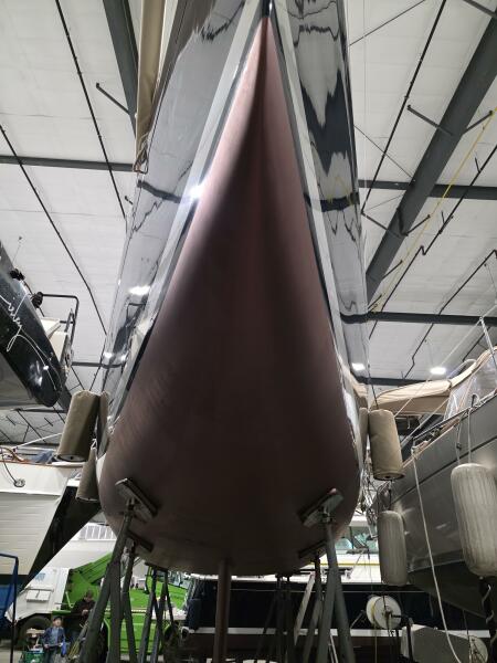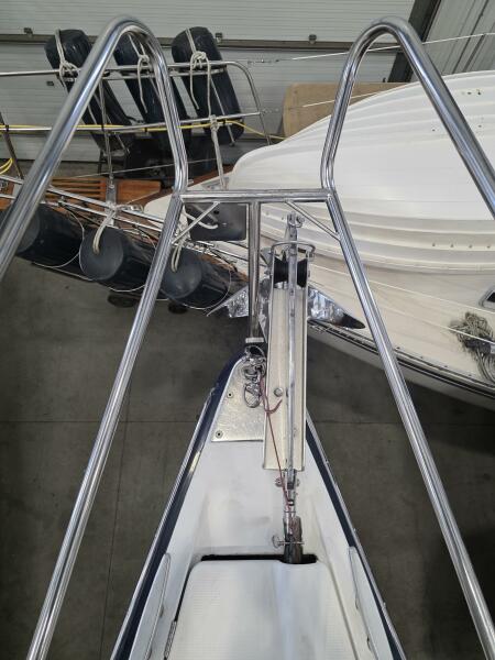 This is a very clean boat with a fresh bottom paint job ready for spring launch. With the mast down for indoor storage, the boat could also be trucked to a new home port.