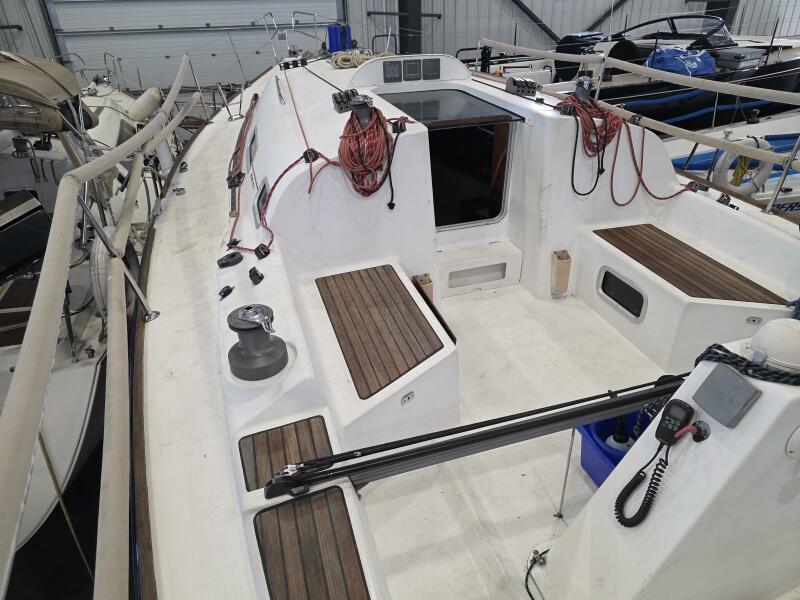 The First 36.7 is the perfect choice for racers who want optimum performance along with the value and comfort of a cruiser. She is equipped with the newer, upgraded pedestal set-up at the helm with a 54" double-spoked wheel with fresh leather wrap. A full suit of North Sails race sails will work well for PHRF or One Design racing.