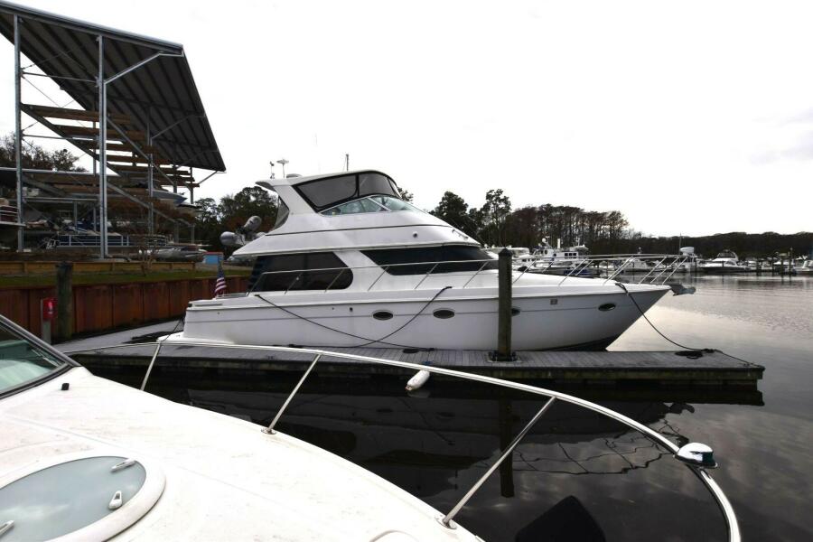 The 460 Carver offers a large interior with three cabins and a large saloon. She is a very open design with ample seating and a comfortable salon. This boat has a bow and stern thruster and includes a dingy. She shows well and is a good option for cruising or live aboard.