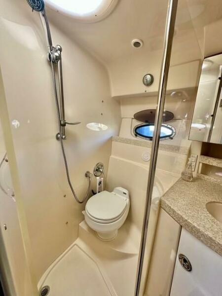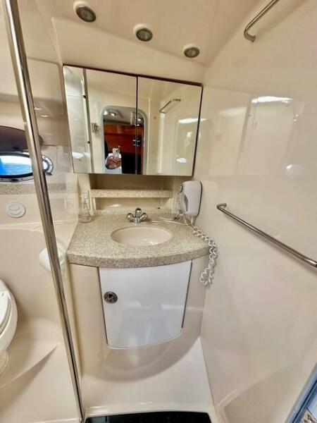The Regal 3560 Commodore is actually 38′ long and has a huge cockpit and saloon. There’s a spacious forward cabin (with fixed double berth) and fabulous separate aft cabin that doubles up as either sleeping accommodation for 2 or a nice lounge area for the kids. With a large galley, separate toilet and shower, and onboard generator + heating; it’s the perfect family sportscruiser. Great for entertaining the kids for long weekends on the water, or for hosting cocktail parties with the grown-ups…