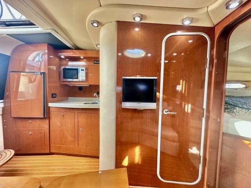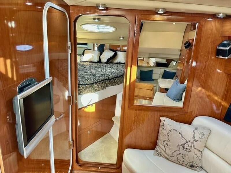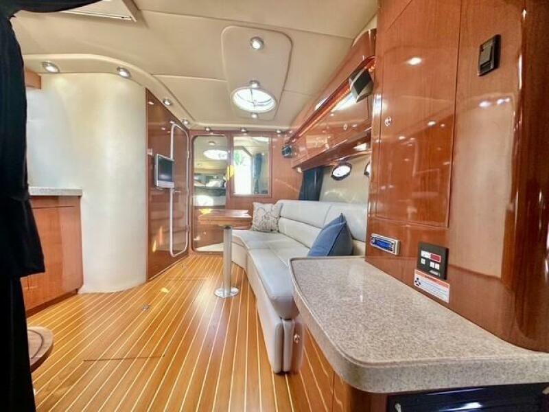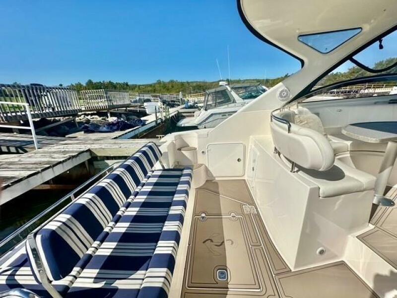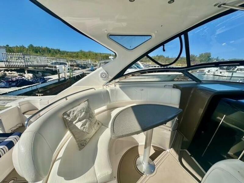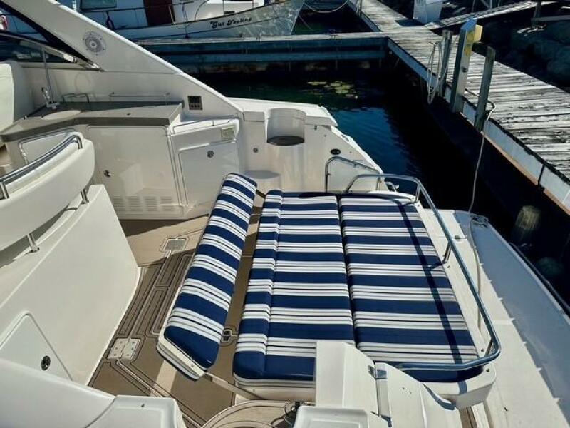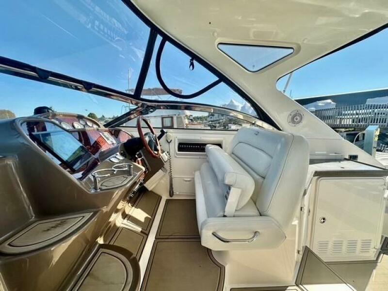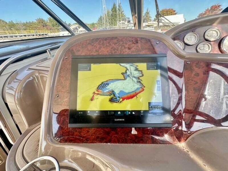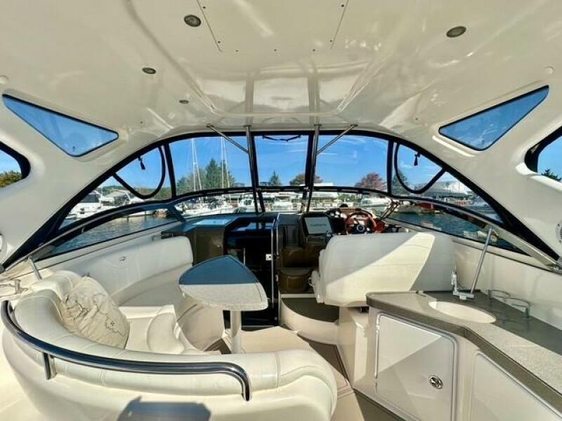 This is a rare opportunity to purchase a move in ready vessel located in Georgian Bay Ontario. Pride of ownership sings on the exterior, and exterior of this rare Hard Top Euro Lounger 3560 Commadore thank to the current owners meticulous attention to not only the cosmetics, but also to the mechanical systems stem to stern.