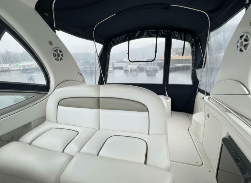It'll take your breath away. The elegant curves and graceful style of this classic 300 Sundancer is guaranteed to capture attention. Come onboard and you'll see how the luxuriously appointed deck and wide open cabin of this handcrafted boat will make cruising more comfortable than you ever imagined.