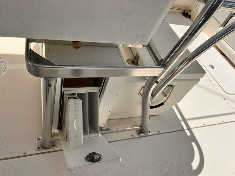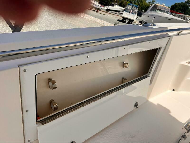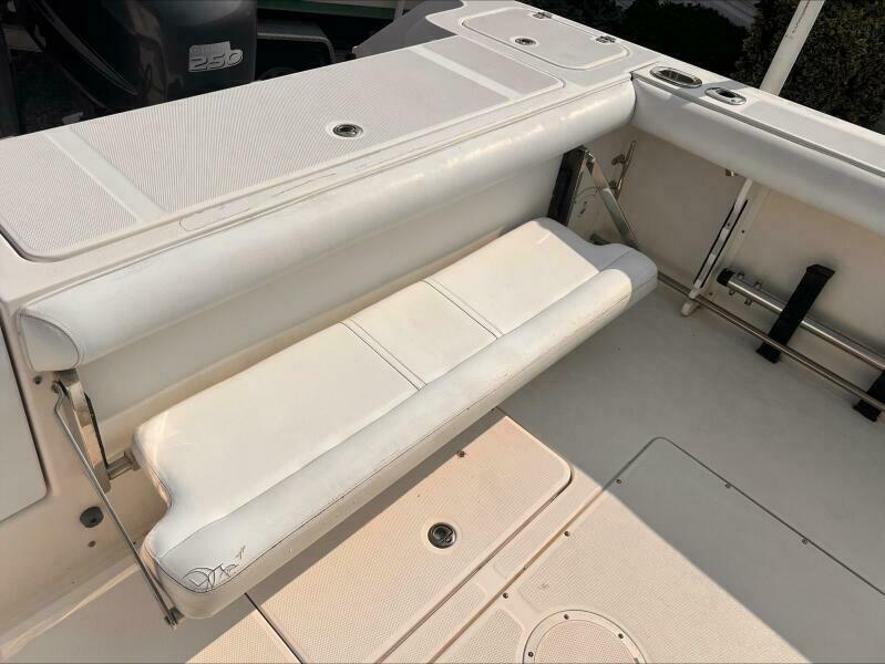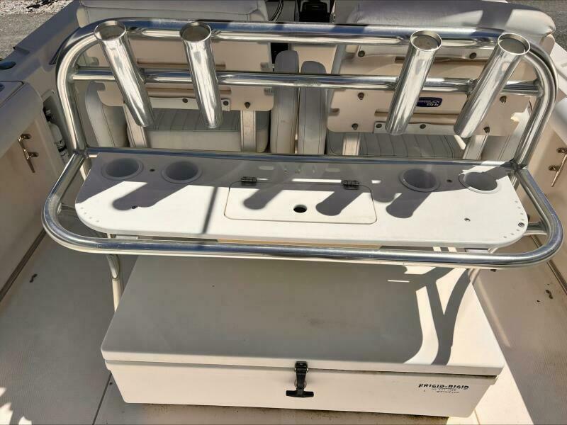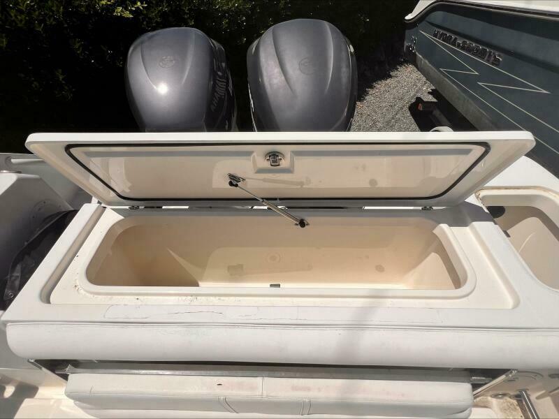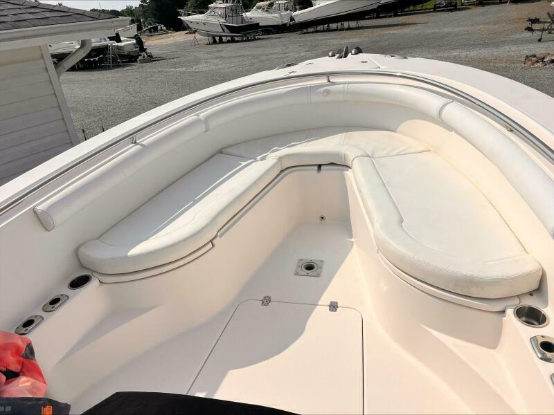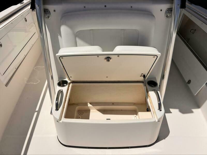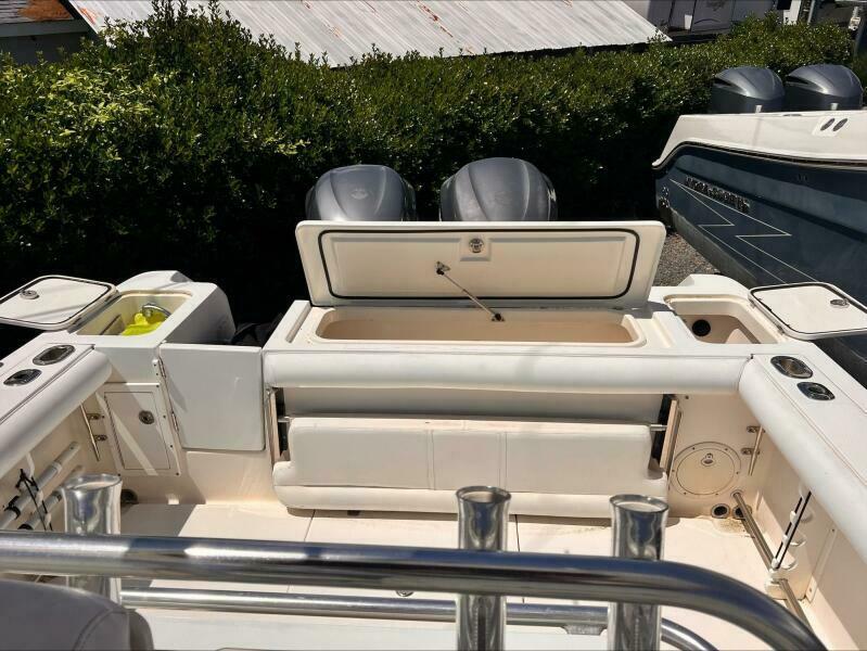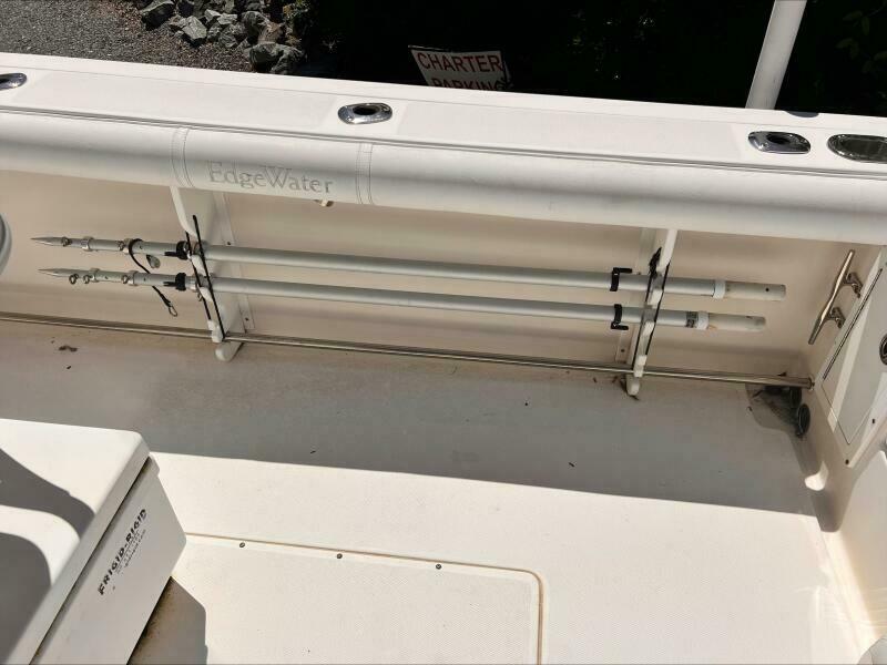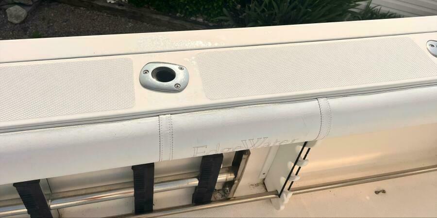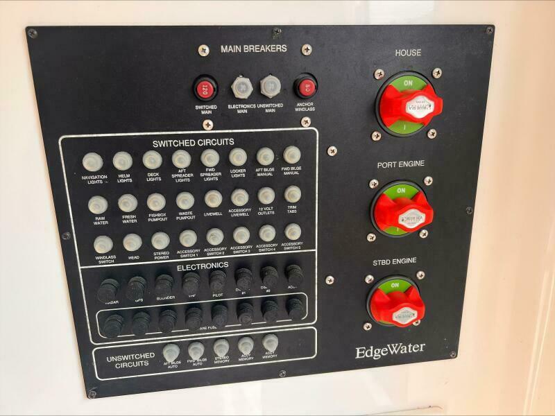 The transom and stringer grid are made from composite and glass, so you’ll find no wood in the Edgewater. Additionally, Edgewater bonds the stringers into the hull right from the start rather than gluing them in after the hull is finished. Eliminating excess resin means a lighter boat without sacrificing strength, and of course lighter means better performance, too. As a result, the 318 runs extremely well with just two engines.