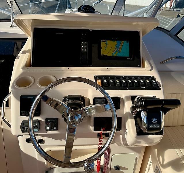 The 2007 Grady White 30 Express is a reliable and versatile center console boat designed for offshore fishing and cruising. It features a spacious cockpit with ample seating and storage, making it ideal for fishing trips or family outings. Powered by twin 2023 Suzuki 300 horsepower engines, this vessel offers impressive performance, speed, and maneuverability, with only 138 hours on the engines, ensuring durability and efficiency. The boat is equipped with a Fisher Panda 4 KW generator, providing reliable power for onboard systems and amenities. Additionally, it includes chiller plates installed in the fish box and drink box which help keep your catch fresh during extended trips. Overall, this well-maintained Grady White combines quality construction, modern power, and practical features for serious anglers and boat enthusiasts alike.