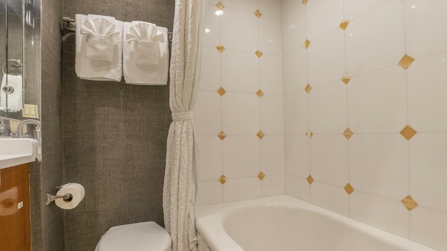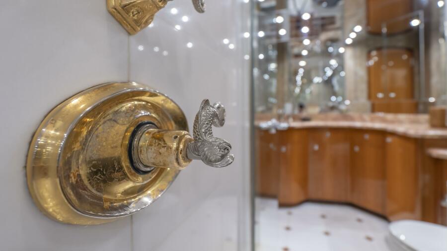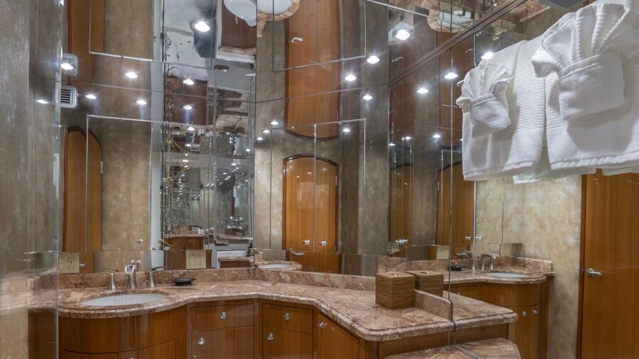 Below deck, Gallopin offers four beautifully appointed staterooms, each with ensuite accommodations. The full-beam master suite is a private haven, featuring a king berth, panoramic windows, a walk-in wardrobe, and a marble-clad ensuite bath. Every cabin reflects a dedication to comfort and tranquility befitting a true luxury yacht.