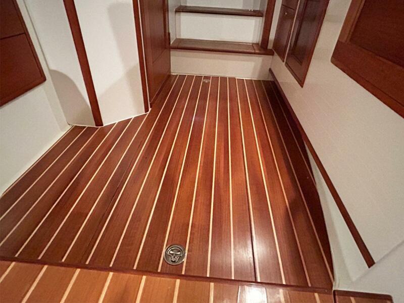 BONNE FETE has benefited from some substantial recent upgrades including a full paint job, new faux teak decks in the cockpit, recent non-skid on all other decks, all new Garmin electronics, and major engine service. Her bow and stern thrusters facilitate easy maneuvering in any situation. She boasts a custom Adirondack bench seat with varnished teak backrests across the stern, along with other less common options including a 12k BTU A/C unit and a custom bimini over the aft cockpit.