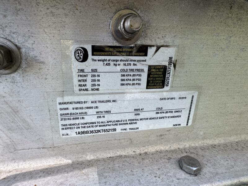 2019 ACE Tri-axel Aluminum Bunk Trailer