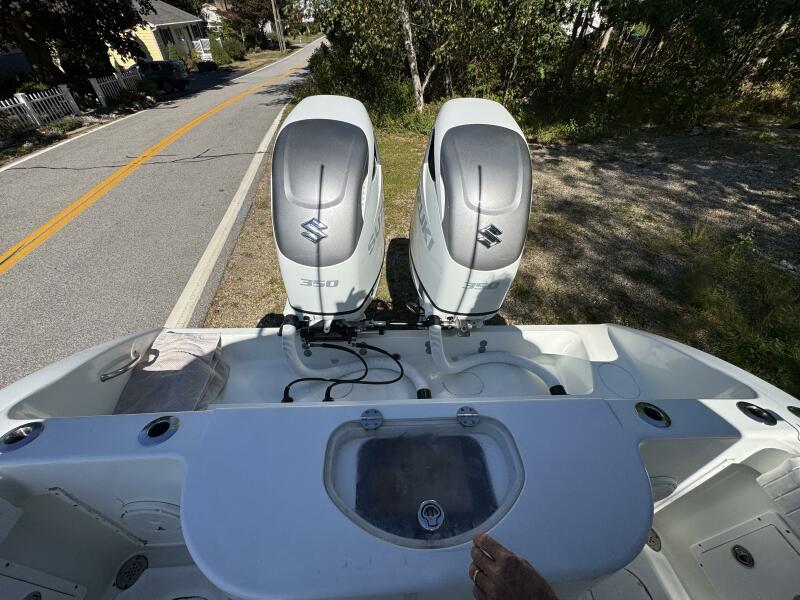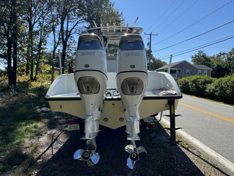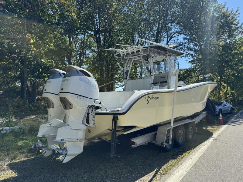 This well-maintained 34' Yellowfin is a serious offshore fishing machine with a reputation for speed, reliability, and smooth ride. Powered by twin 2022 Suzuki 350 outboards with 297 hours and a 300-hour service. It offers incredible handling in any conditions. Features include a spacious deck layout, 2 large livewells, ample storage, New Simrad electronics, Minn Kota trolling motor, Aluminum bunk Trailer, and full Canvas cover. Captain Owned and Maintained