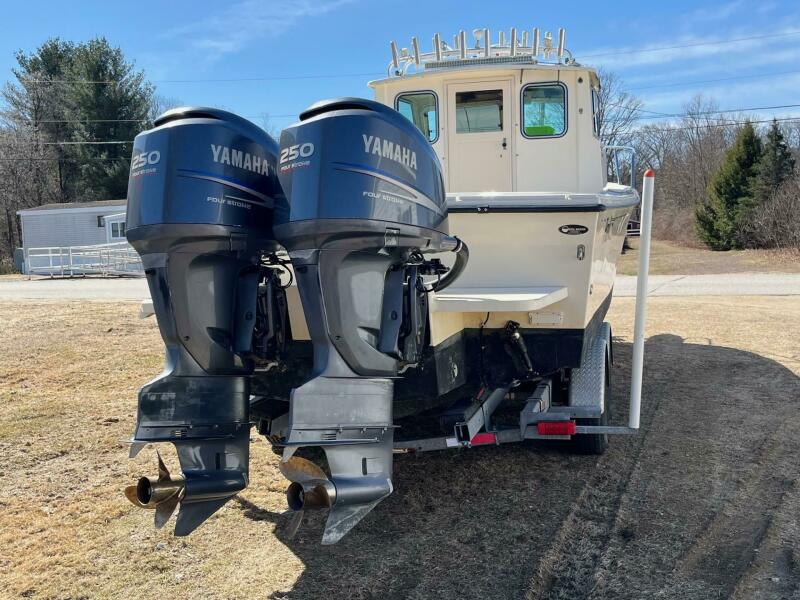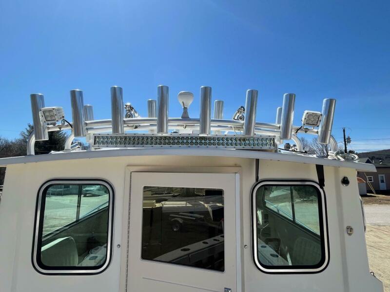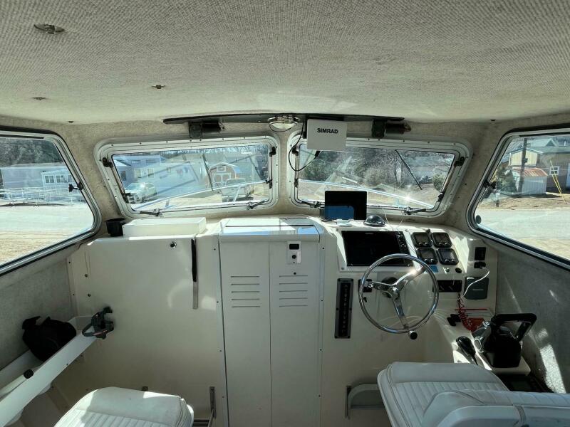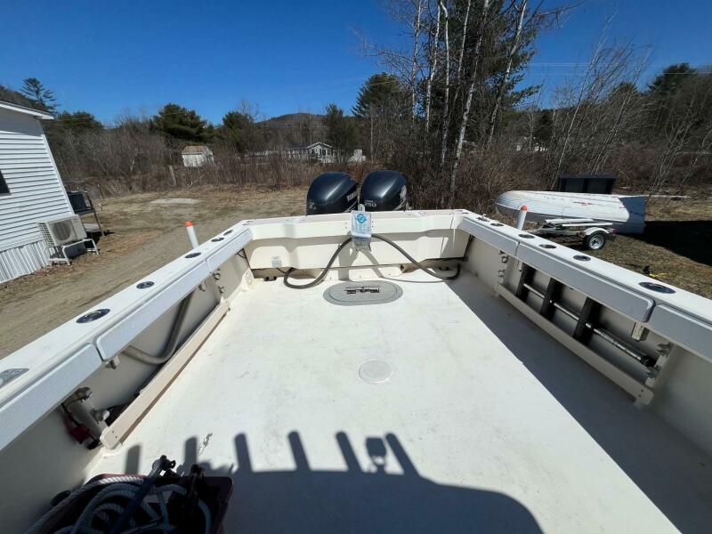 Updated dual Simrad Screens, GPS Plotter, Radar, Fishfinder, ICOM VHF Radio, Huge Transom Fishbox, Livewell, Swivel Rod Holders, Cockpit Lightbar. She's Turn Key and Ready for the "Giant Bluefin Tuna Bite" At our yard in Humarock, MA